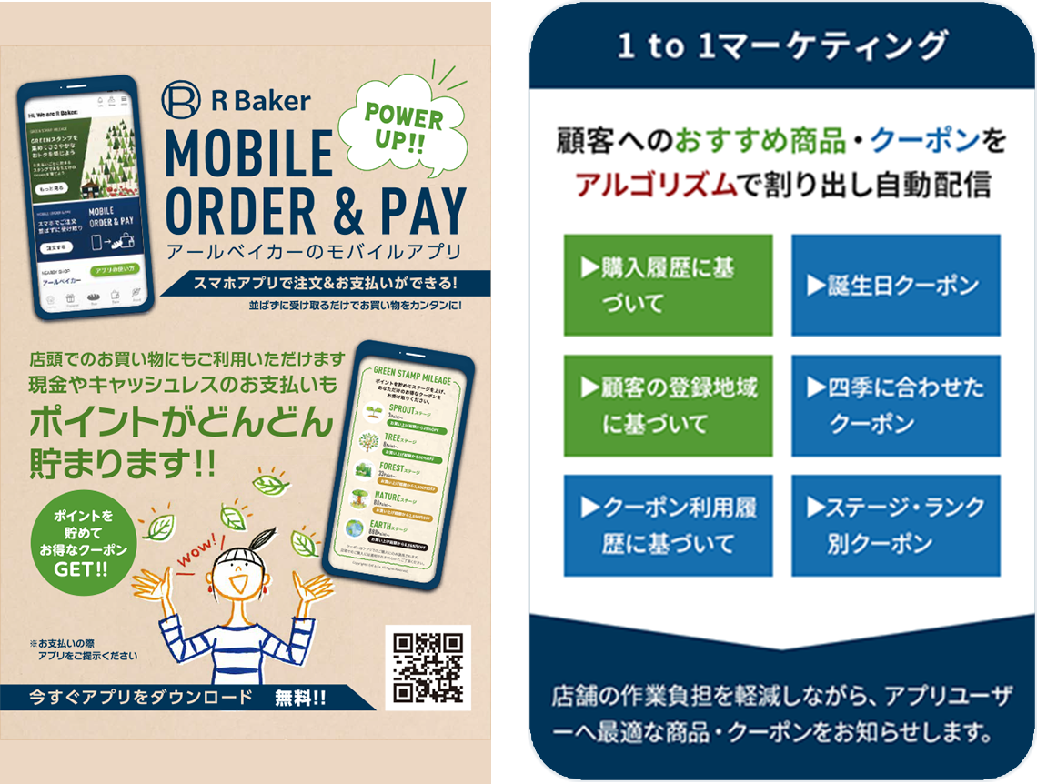 - アールベイカーアプリ会員様は、スマホ事前決済・キャッシュレス決済が可能になります。加えて、AI技術等を活用することで、今までにない「お客様1人1人のニーズに合わせたおもてなし」を実現しました。